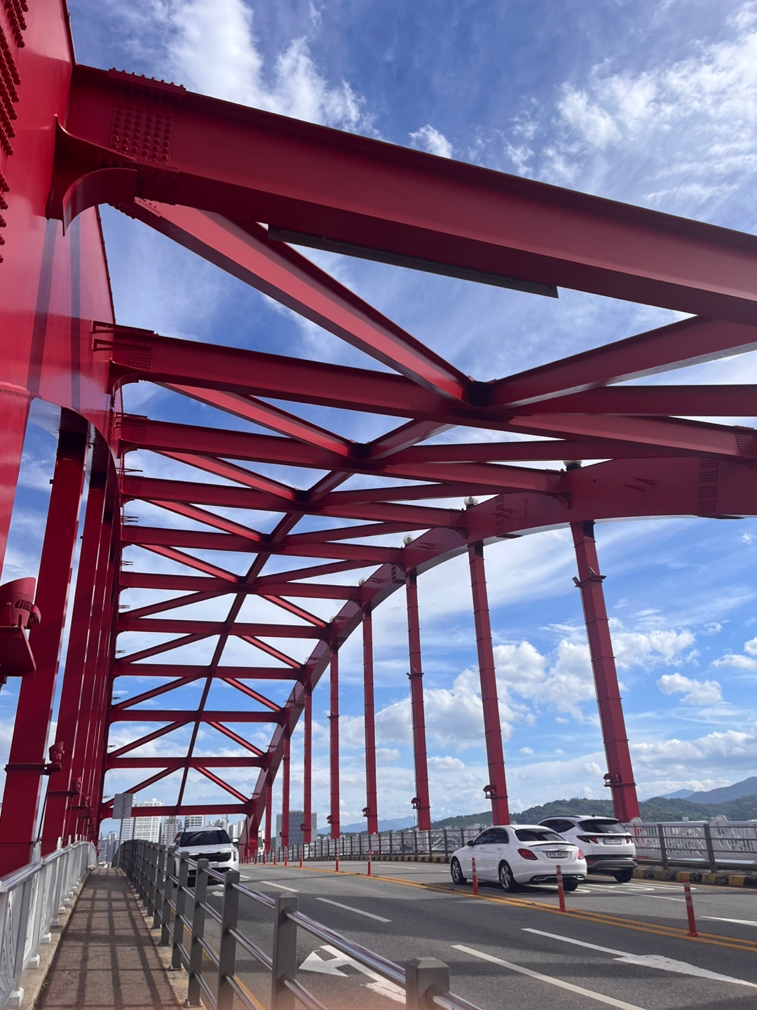 다리 밑에는 바다와 다리 위에는 하늘과 구름이 드넓게 있었습니다.