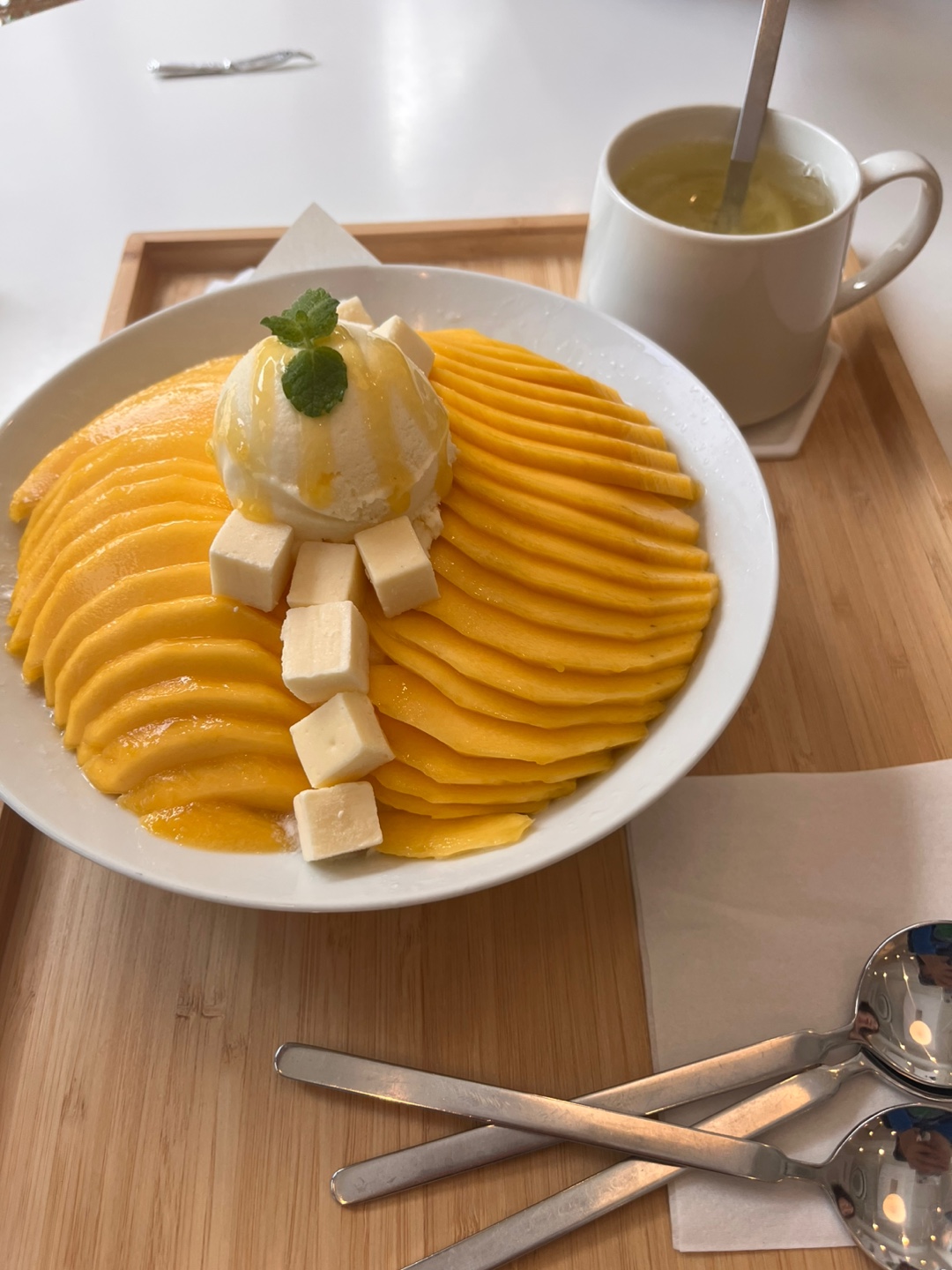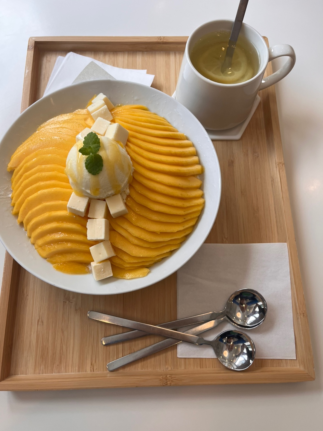저희는 가서 망고빙수와 음료를 시켰습니다.