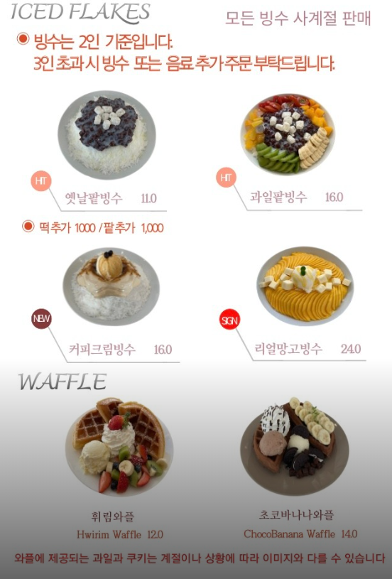 빙수, 디저트 등 다양한 음식들을 팔았습니다.