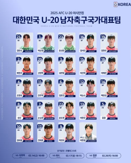 2025 U-20 아시안컵 한국 축구 명단 등번호