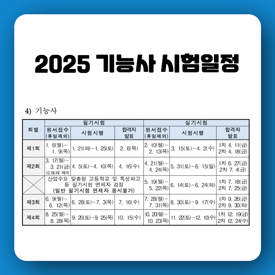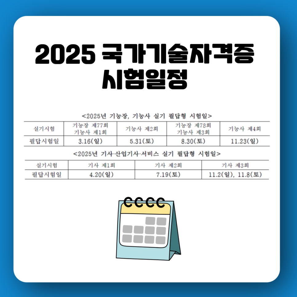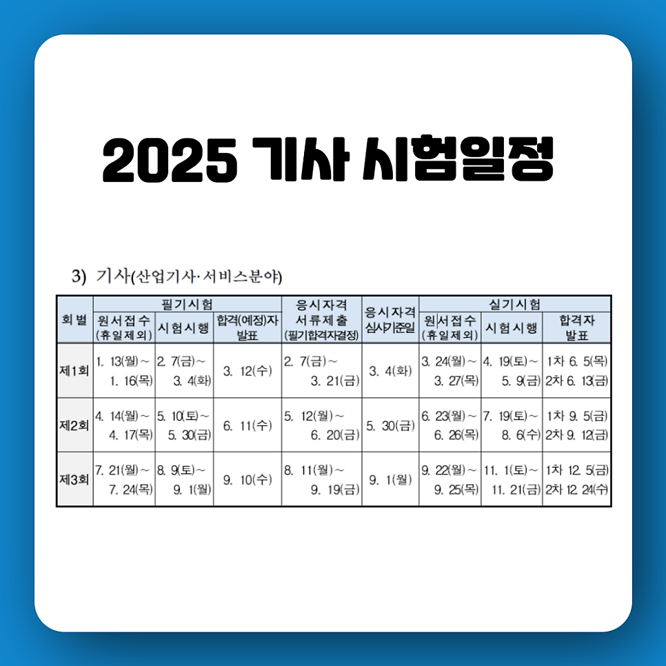 2025년 기술 자격증 시험 일정 포함 신청 기준에 대해 알려드리고자 합니다.